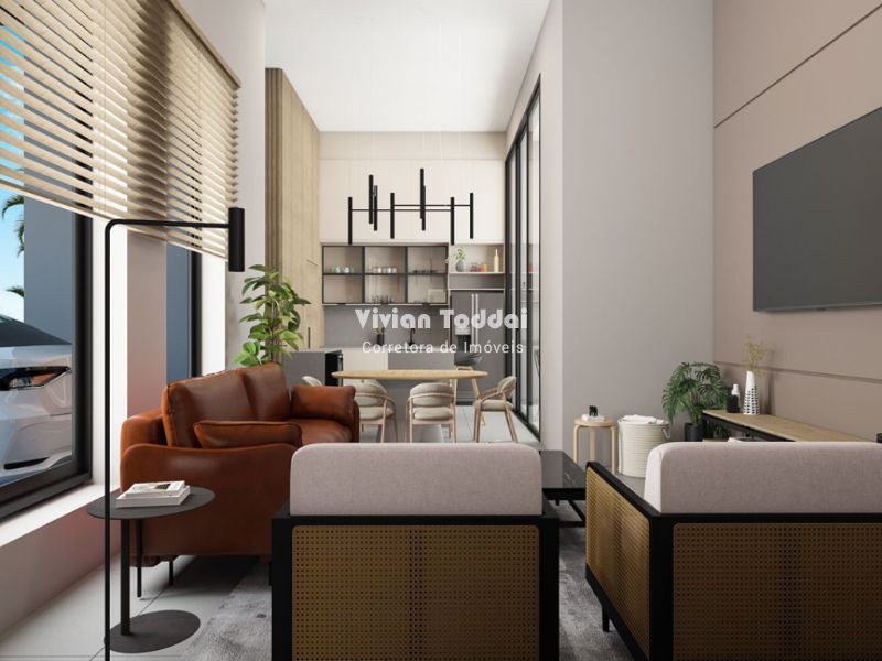 • Sala de estar e sala de jantar integradas à cozinha